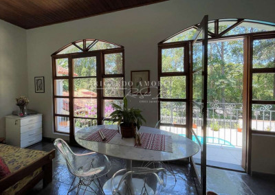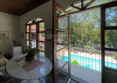 - Piscina de alvenaria 8m x 4m, revestida em Epoxi com grande solarium voltado para área verde preservada.