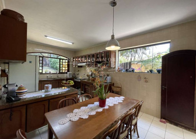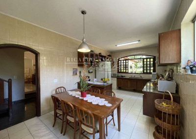 - Cozinha com sala de almoço, repleta de armários planejados, com 2 cubas, bancadas e gabinetes.