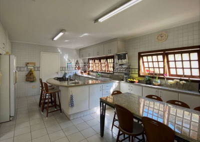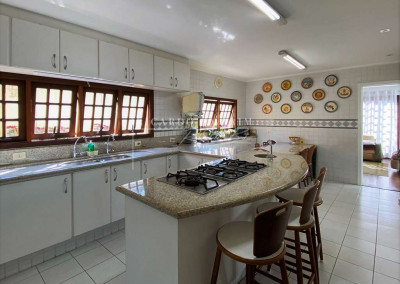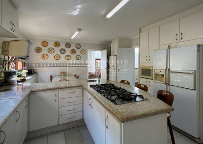 - Ótima copa/cozinha com sala de almoço para 8 pessoas, repleta de armários planejados, com bancadas, pias, gabinetes e ilha com balcão.