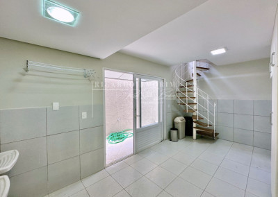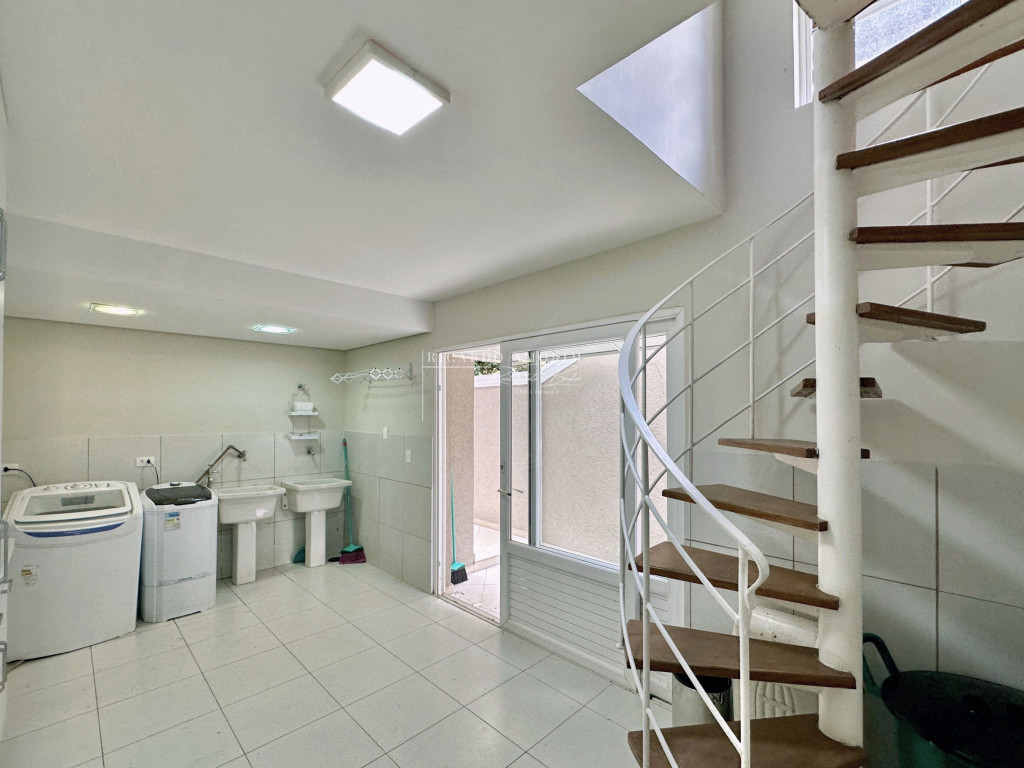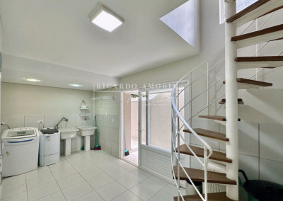 - Lavanderia planejada fechada com acesso externo, 2 tanques, armários, gabinetes e grande depósito com acesso para manutenção do jardim de inverno. Escada caracol de ferro pela lavanderia dando acesso à suíte de serviço, com armário e banheiro com box de vidro e chuveiro elétrico.