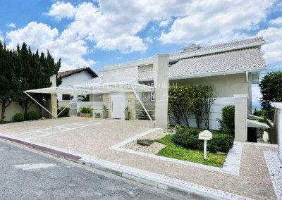 - 4 suítes amplas com armários planejados e pisos em madeira, sendo 3 stes no piso superior (master + duas) com telas mosquiteiro, linda vista para o Vale da Fazendinha, 2 delas com terraços. Todos os banheiros com tampos em mármore, espelhos, gabinetes, vasos com duchas higiênicas, box de vidro com revestimento em pastilhas.