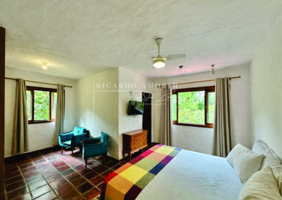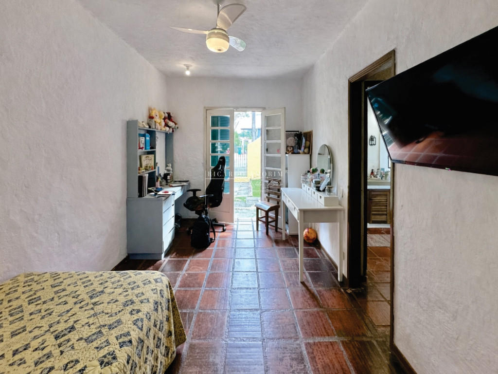 - 4 suítes, 3 planejadas com closets e ventiladores, uma com porta balcão para o quintal, a master com saleta e 1 ste no piso inferior para hóspedes ou serviço.