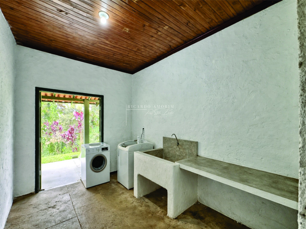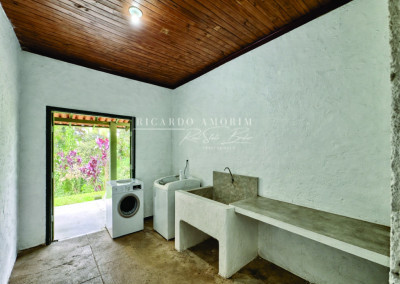 - Área de serviço aberta ensolarada e lavanderia fechada com tanque, voltada para a varanda e jardim.