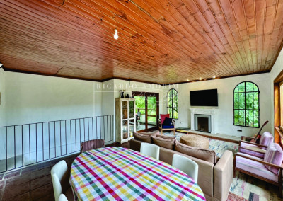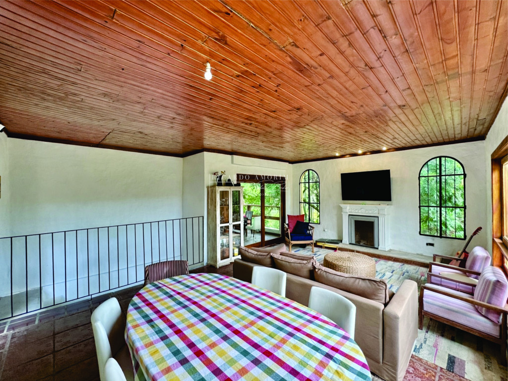 - Estar, TV, lareira, jantar, música/bar.