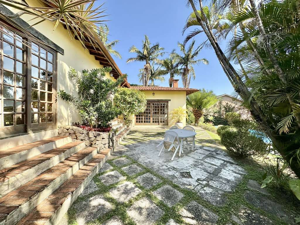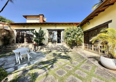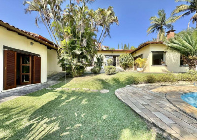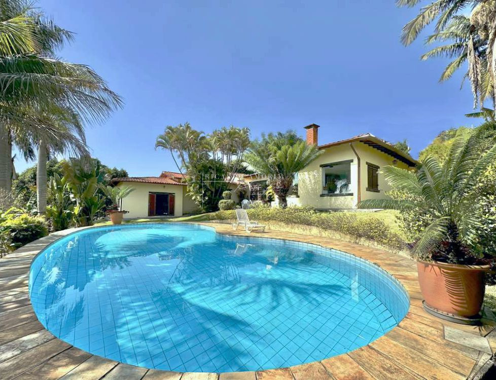 - Piscina de alvenaria revestida em azulejos, formato orgânico “feijão”, escada interna, sistema Aqualux tratamento por ozônio (sem cloro), solarium e casa de máquinas.
