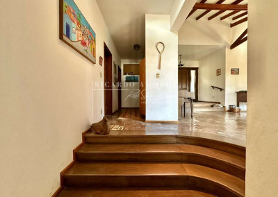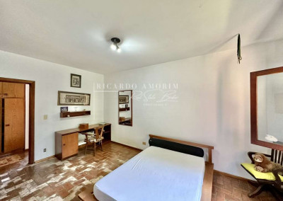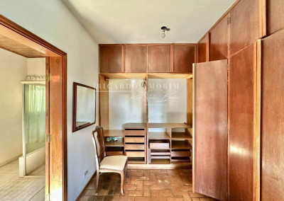 - Área íntima com roupeiro, corredor largo com portas balcão voltadas para varanda e jardim.