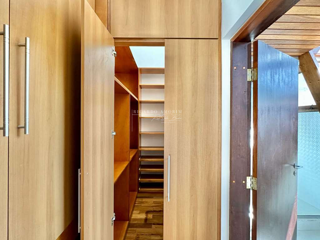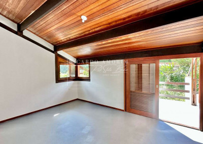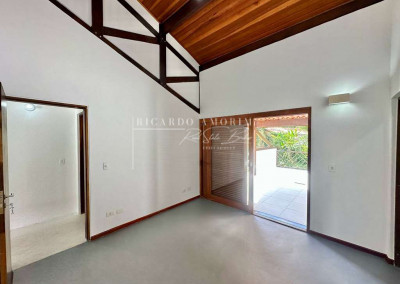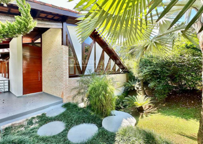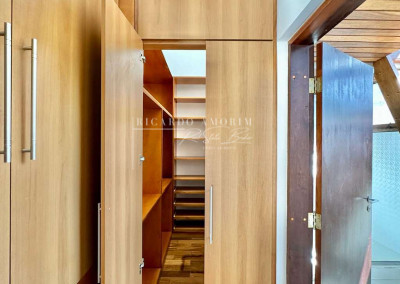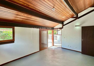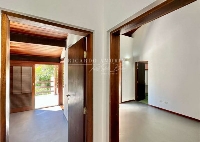 - Portas e janelas em madeira e vidro com venezianas de correr nas suítes.