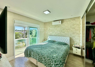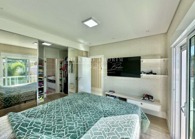 - 3 suítes com terraços, guarda corpo de vidro e metal, planejadas repletas de armário, com ar-condicionados Q e F, persianas elétricas, bancadas, gabinetes, criados mudos, painéis TV. Sendo a master com closet.