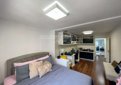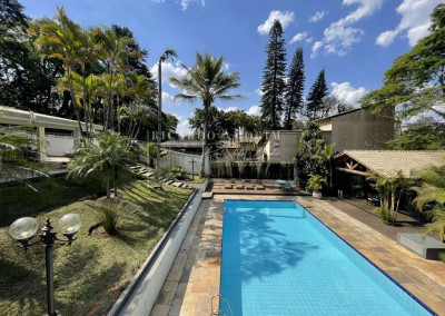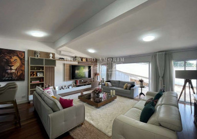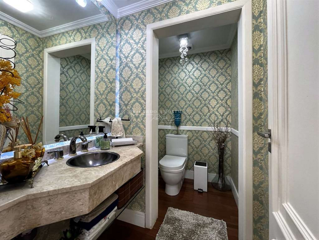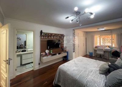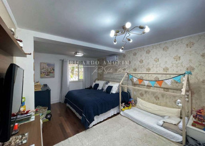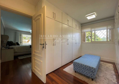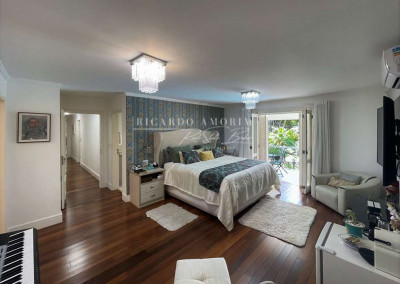 - 4 dormitórios com armários, sendo 3 suítes com . A master com 70m², varanda com vista para o jardim e piscina, com guarda corpo de vidro e alumínio, sala de vestir.