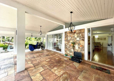 - Pisos em madeiras Cumarú encaixadas, porcelanato e pedras.