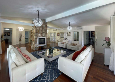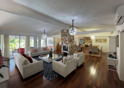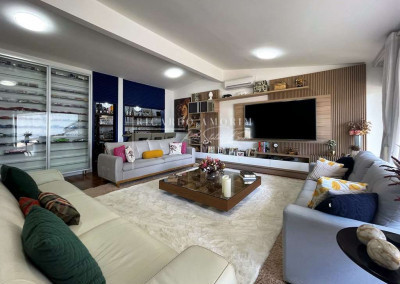 - Living para 5 ambientes integrados e voltados para a varanda em “L” e quintal com lazer e jardim.