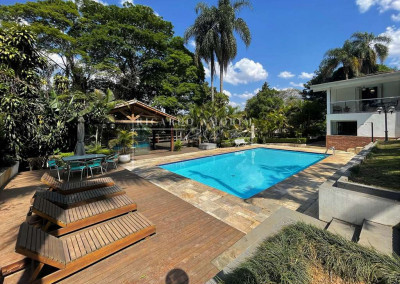 - Piscina de alvenaria 10m x 5m com deck, solarium, ducha e casa de máquinas.