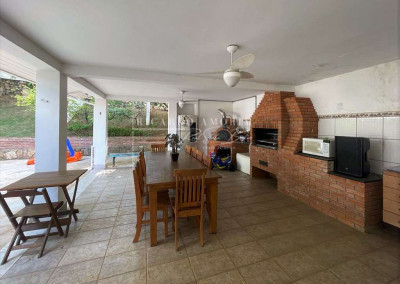 - VARANDA GOURMET integrada à sala de jantar e cozinha, com churrasqueira, forno de pizza, fogão à lenha, bancada e pia.