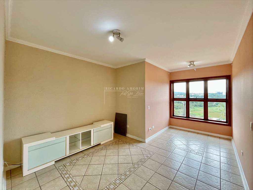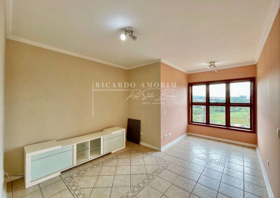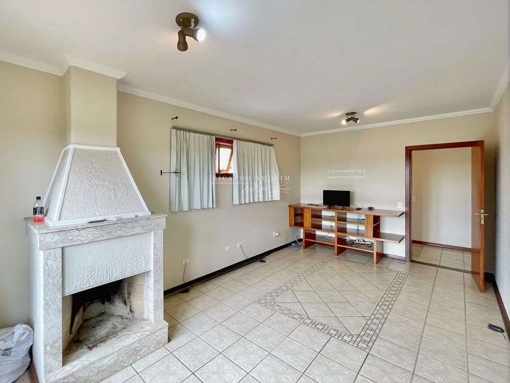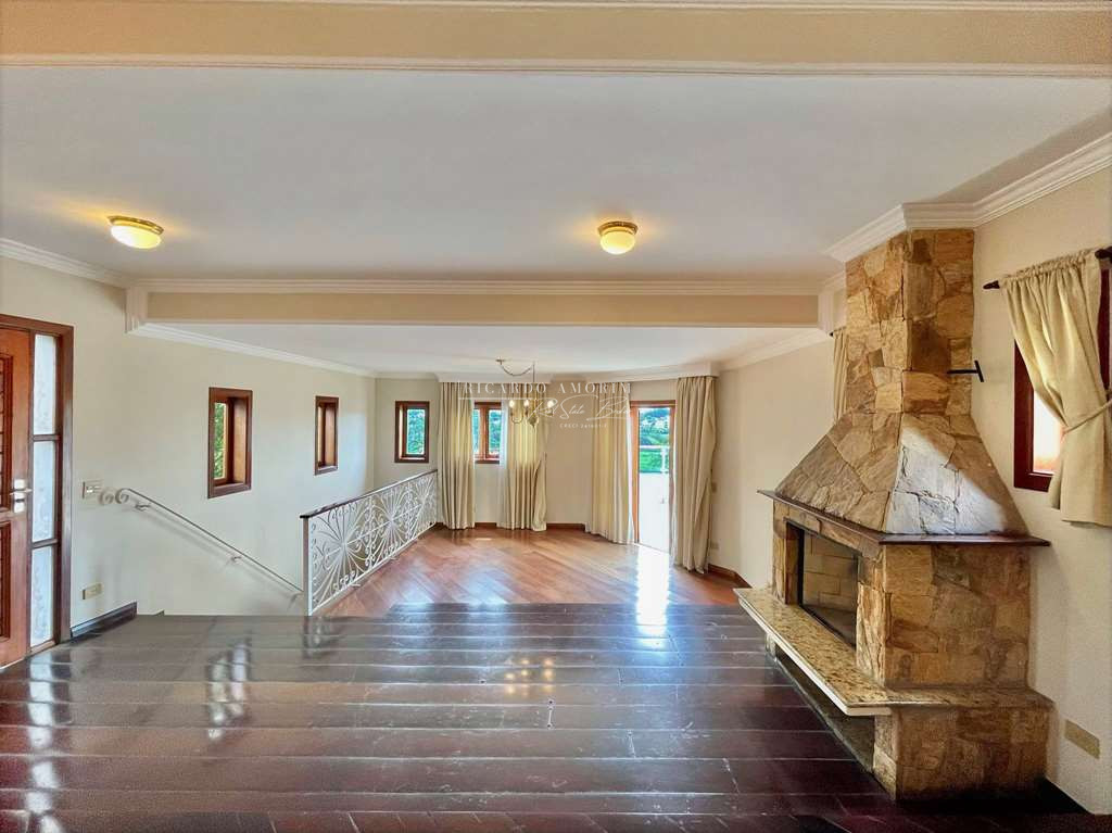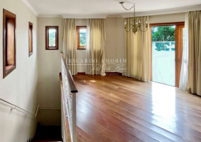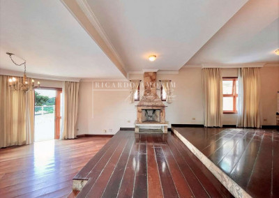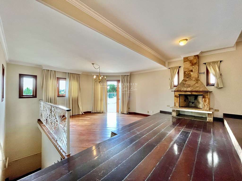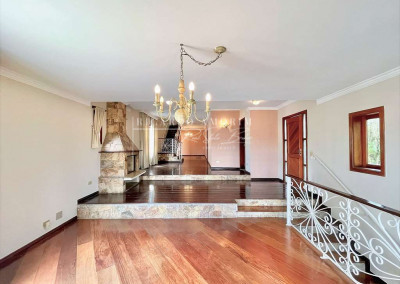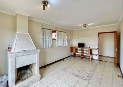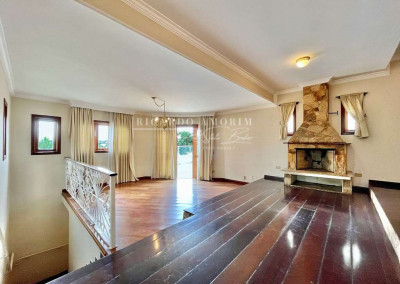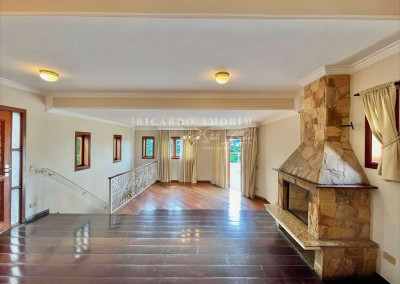 - Living com 3 amplos ambientes, com piso de madeira, lavabo e lareira em pedra, com portas balcão para a varanda.