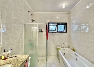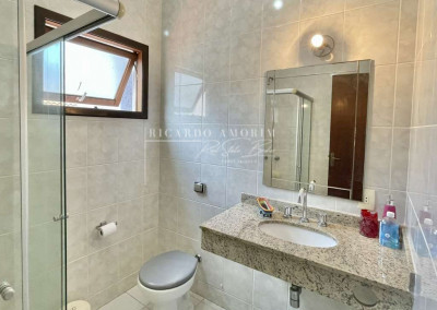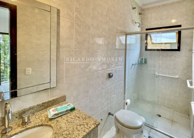 - Banheiros com tampos em granito, espelho e box de vidro, sendo a master com hidro.