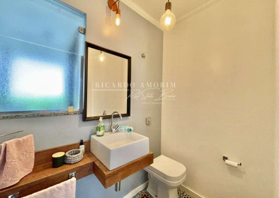 - Lavabo com tampo em madeira.