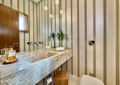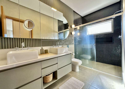 - Banheiros decorados com painéis, tampos white prime, espelhos, gabinetes, box de vidro e nichos. Sendo a master com 2 cubas e 2 duchas.