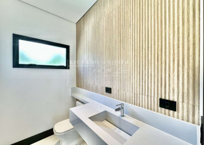 - Banheiros com torneiras mono comando, box de vidro, nichos e ralos horizontais. Sendo a master com 2 cubas e banheira.