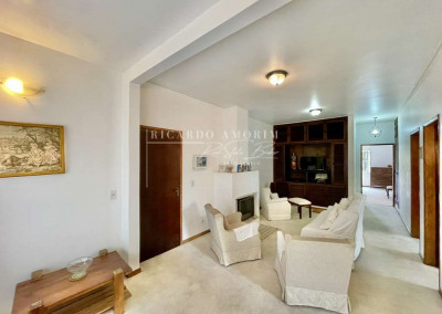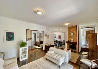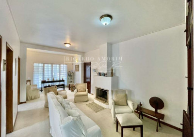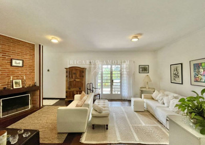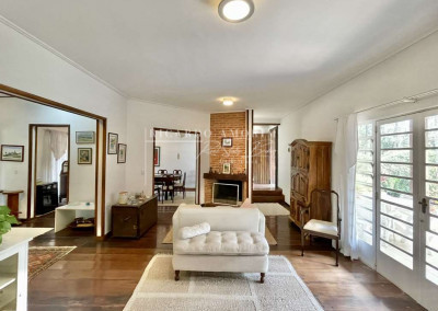 - Living para 3 ambientes, com lareira, bar e portas-balcão dando para a varanda e piscina.