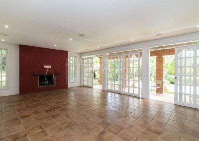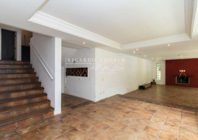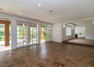 - Living para 3 ambientes, com lareira e piso em lajotas. Nicho para bar e linda varanda.