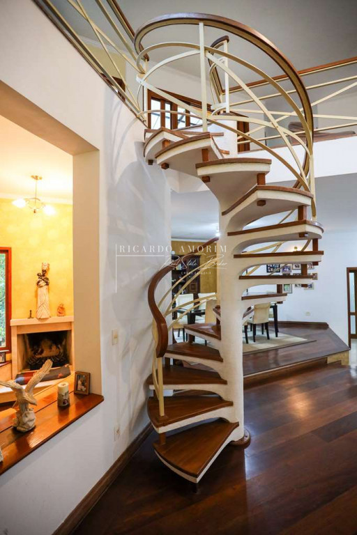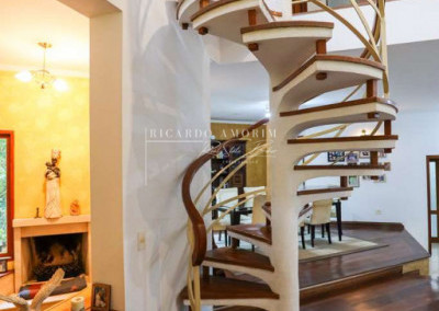 - Escada caracol que dá acesso do living para o mezanino no piso superior.