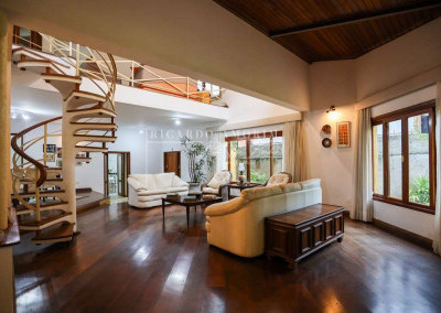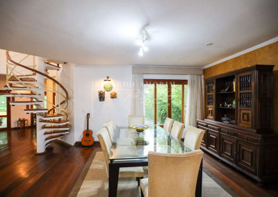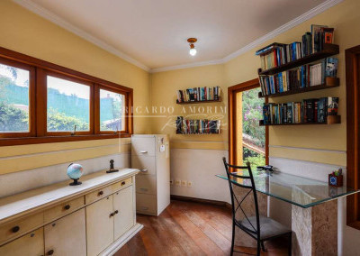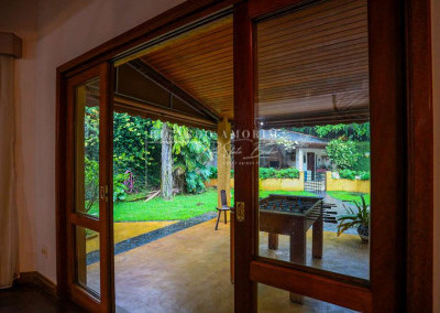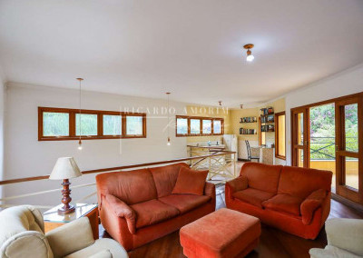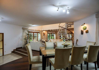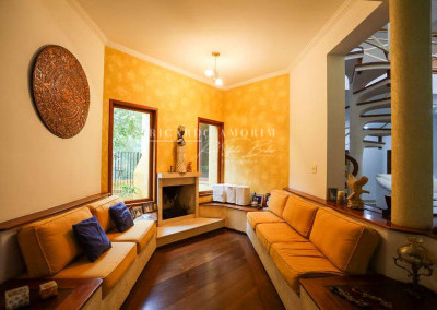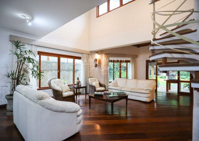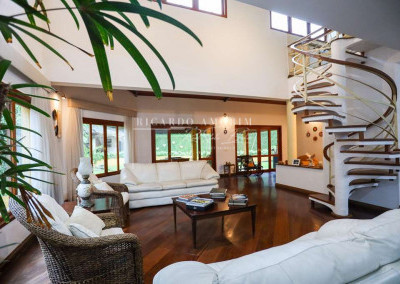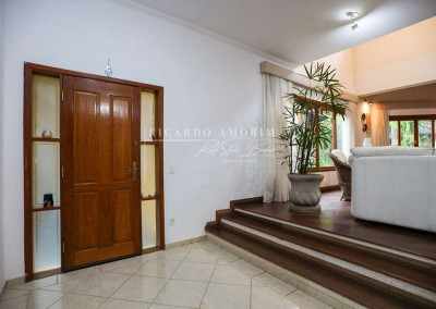 - Living para 4 ambientes: sala de estar, sala da lareira, sala de jantar, home theater. Todos com acesso aberto para a área de lazer com pátios, jardim, piscina e churrasqueira.