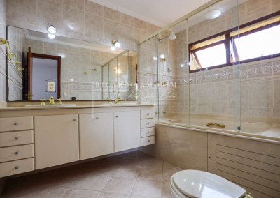 - Banheiros com armário, box de vidro, louças e metais Deca.