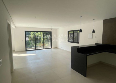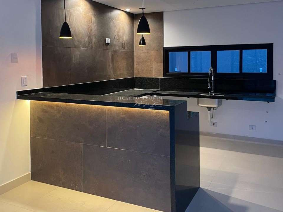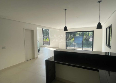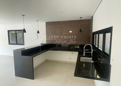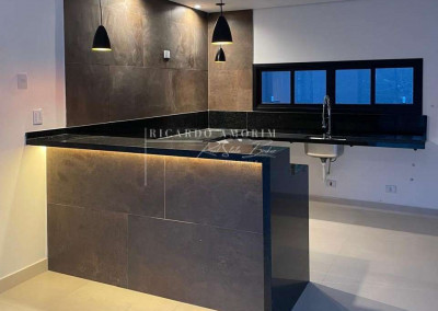 - Cozinha conceito aberto, integrada ao living. Com bancadas e balcão de granito em “U”, cuba inox e torneira gourmet.