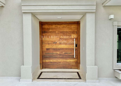- Porta social em madeira pivotante, com fechadura eletrônica.