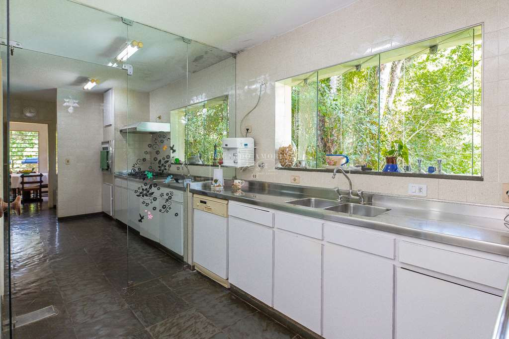 - Área de serviço fechada com acesso direto (área íntima e cozinha), com rouparia, lavanderia com 2 tanques inox, despensa e copa para funcionários.