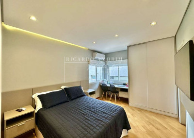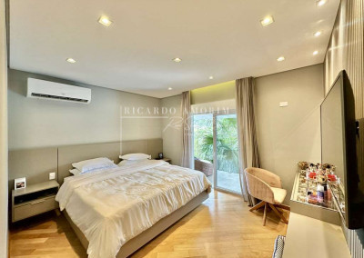 - 4 suítes com armários e bancadas, ar condicionados e painéis para TV. Sendo 2 com varandas e vista e a master com 2 closets planejados e espelhos.