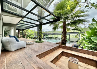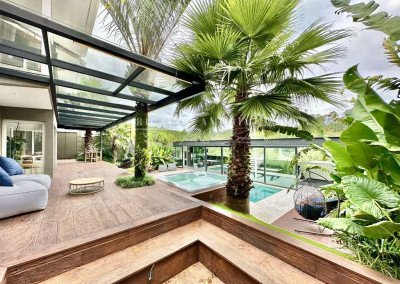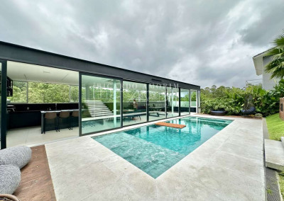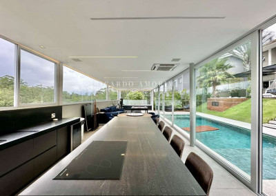 - Living para 5 ambientes voltados para varanda, piscina, jardim e anexo gourmet.