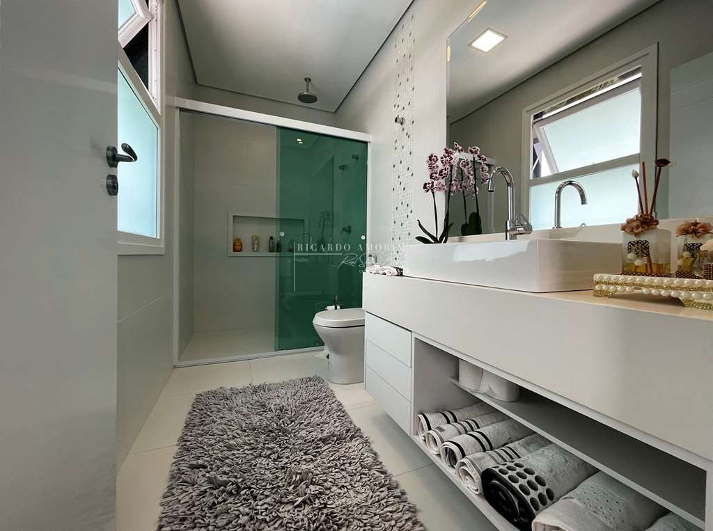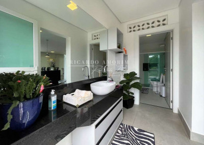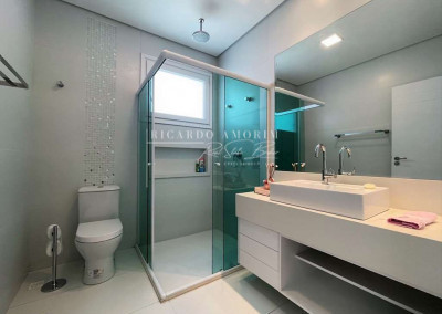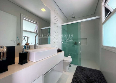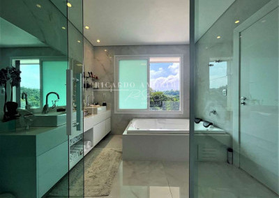 - Banheiros com espelho, bancadas em Quartzo, box de vidro até o teto e nichos. Sendo a máster com 2 cubas, 2 duchas de teto e hidro dupla panorâmica.