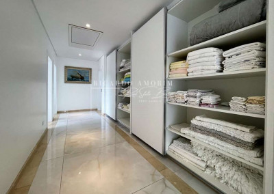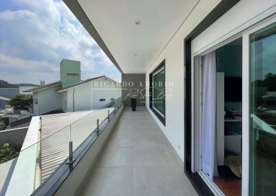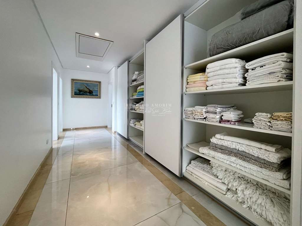 - 4 suítes com closets planejados e persianas elétricas de controle remoto, 2 suítes com varandas, guarda corpo em vidro e inox. A master com varanda em “L” e sala de vestir sr. e sra toda planejada, com ilha e porta blindada.