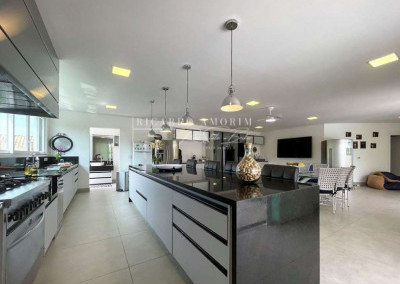 - Espaço gourmet todo planejado, com ilha, balcão, bancada, armários, bar e grande despensa com prateleiras em mármore. Churrasqueira elétrica giratória, lavadora, fogão industrial de 6 bocas Venancia, forno e geladeira Brastemp.