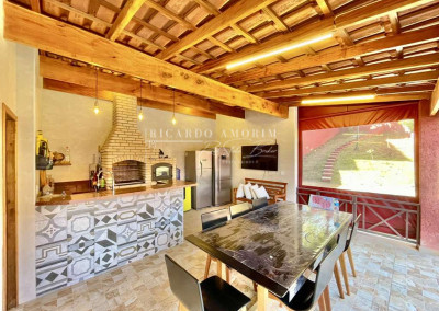 - ANEXO GOURMET com churrasqueira, forno de pizza, bancada, pia inox, balcão em granito e banheiro.