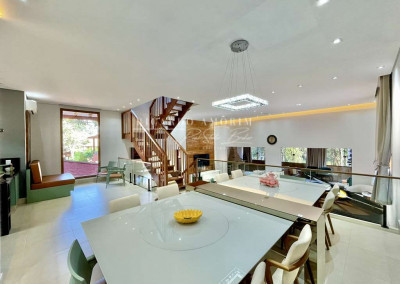 - Varanda voltada para o jardim e piscina, ideal para café da manhã e almoço em dias de calor.