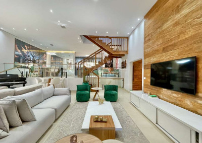 - Living envidraçado para 5 ambientes com ar condicionado, voltados para varanda e lazer, com piscina, gourmet e jardim.