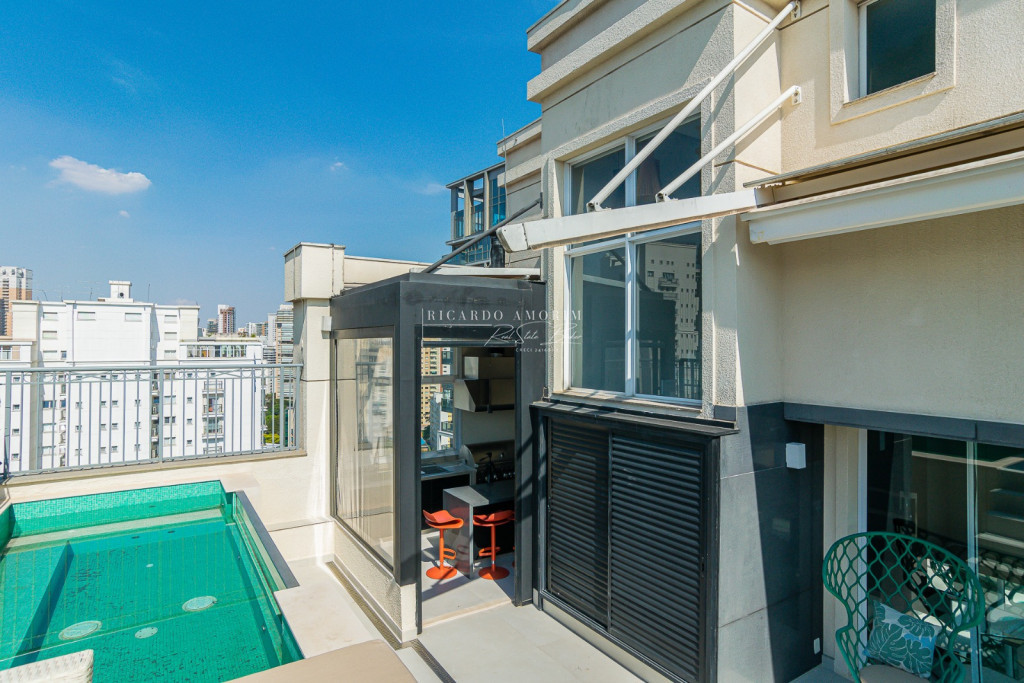 Magnífica cobertura duplex localizada na deslumbrante Vila Nova Conceição. Este espaçoso imóvel oferece 4 suítes elegantes, com características exclusivas e comodidades de alta qualidade. Totalmente automatizado para maior conveniência, 5 vagas de garagem, depósito. Ar condicionado e televisão em todos os quartos 2 cozinhas, incluindo uma gourmet, equipadas com armários planejados e eletrodomésticos de alta qualidade Sala de estar e sala de jantar espaçosas, com móveis planejados Área de serviço prática com móveis planejados 4 suítes sofisticadas, uma delas master com closet, todas contendo armários planejados Piscina com água salgada para momentos de relaxamento Obras de arte assinadas, proporcionando um ambiente único e refinado