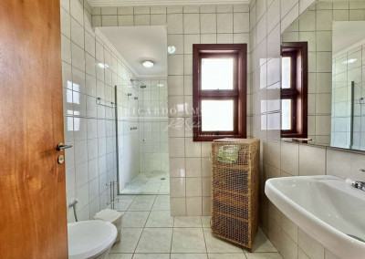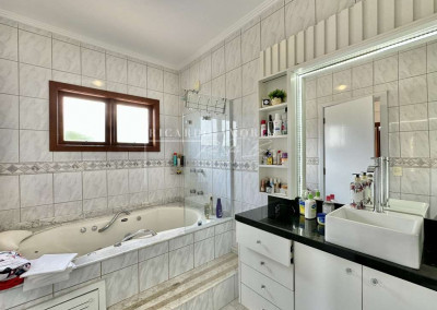 - Banheiros com tampos em mármore / granito, espelhos, gabinetes, box de vidro, sendo 2 suítes com hidro.